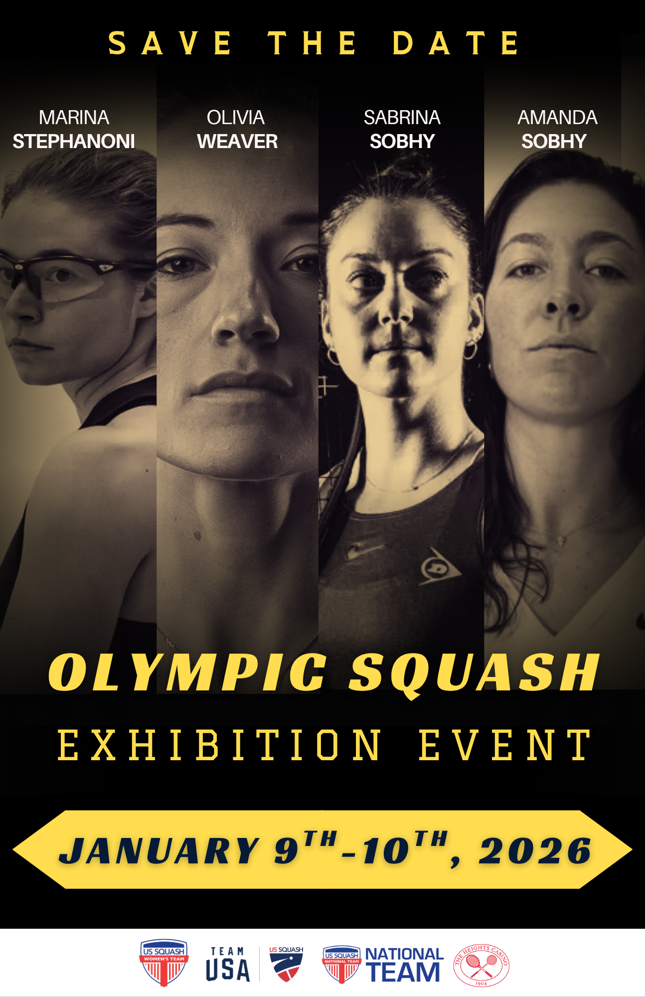Poster for Olympic Squash Exhibition Event at The Heights Casino